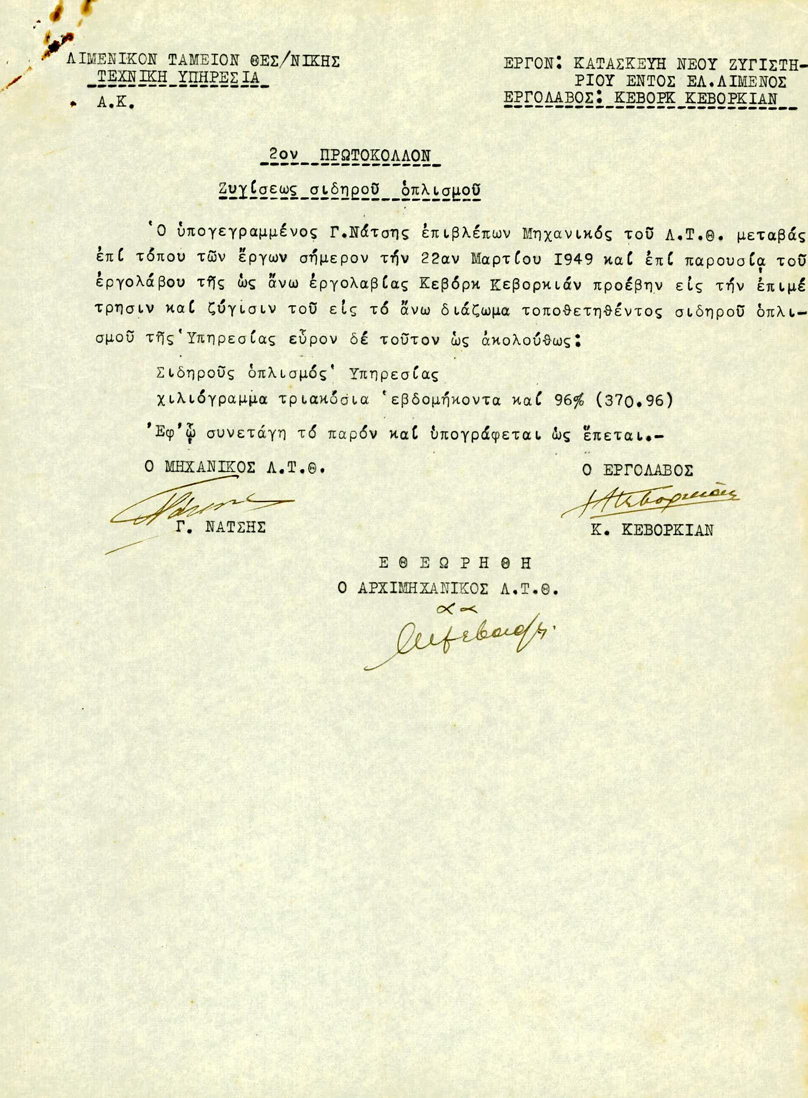 (Σύμβαση για την κατασκευή λιμενικών έργων: 1896-07-8/20 Ίδρυση Γαλλικής Κατασκευαστικής Εταιρίας: 1897 Σύμβαση Εκμετάλλευσης Λιμένα: 1904-12-18/31 Μετονομασία σε Εταιρία Εκμετάλλευσης: 1905-01-16)